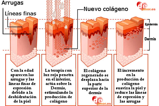 Los infrarrojos penetran en profundidad y activan los fibroblastos, que son los “formadores” de colágeno y elastina. Por lo tanto mejora la matriz cutánea, la piel mejora en general.