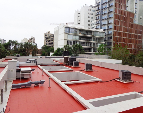 Colocación de Membrana Líquida: transitable con carpeta de cemento y polímero, y con revestimiento acrílico símil piedra.